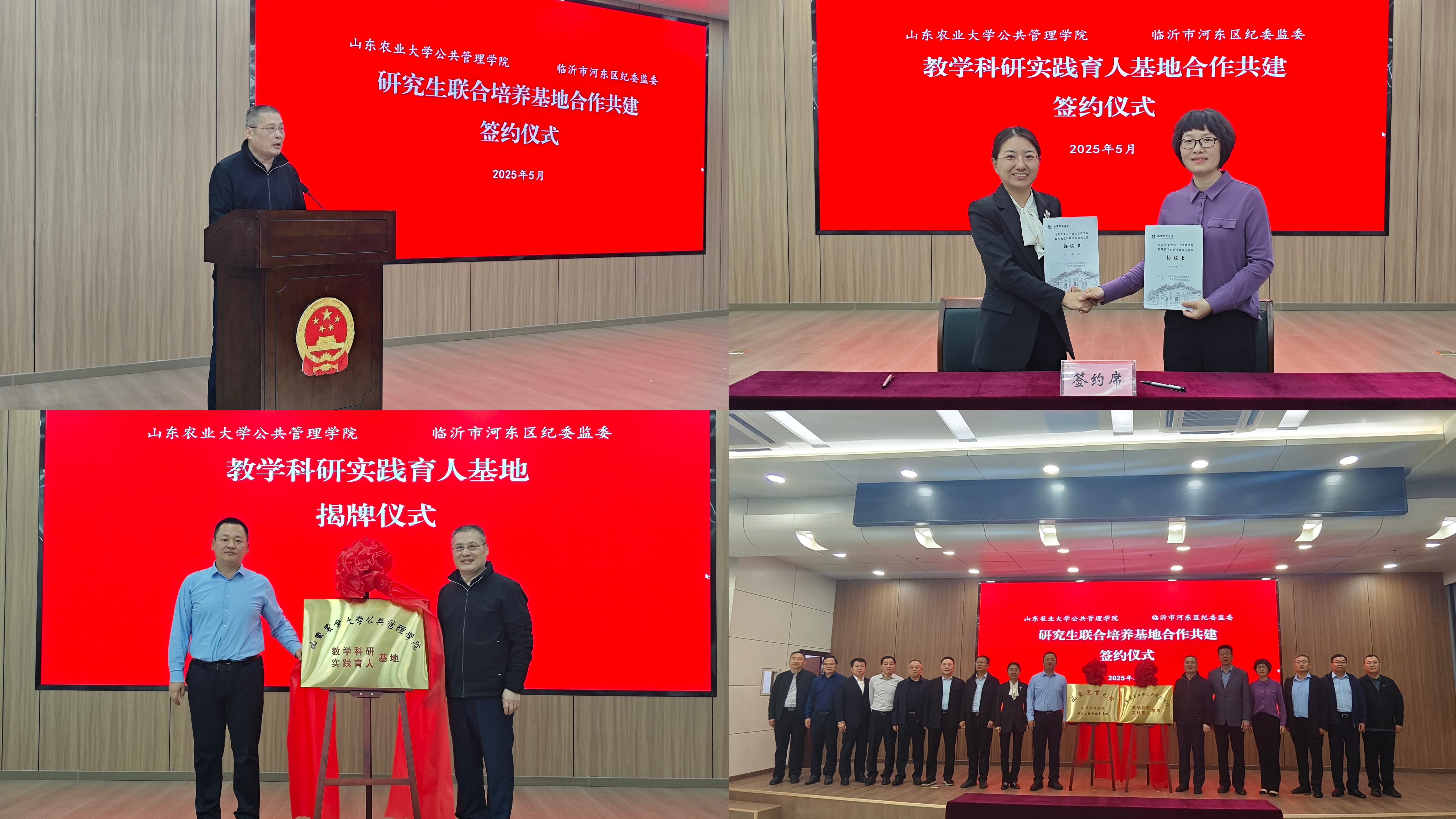5月9日,山东农业大学公共管理学院党委书记孙建迎一行7人赴临沂市河东区党性教育基地管理服务中心(华东野战军总部旧址暨新四军军部旧址纪念馆)进行大学生思想政治教育实践基地签约揭牌仪式,赴河东区纪委监委进行研究生联合培养基地、教学科研实践育人基地签约揭牌仪式。