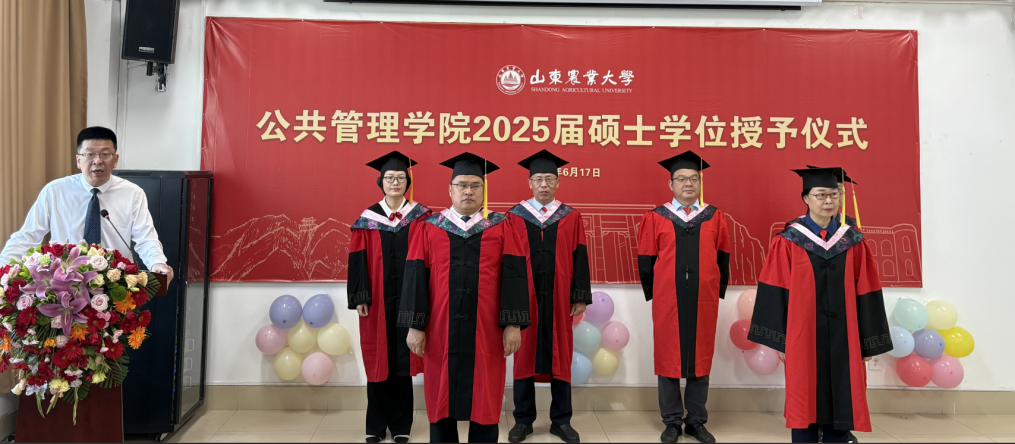 2025年6月17日上午,山东农业大学公共管理学院在文理大楼802隆重举行2025届研究生毕业典礼暨硕士学位授予仪式,学院领导、学院学位评定委员会委员、全体毕业研究生及导师共同见证了这一庄严而温馨的时刻。王秀鹃副院长主持仪式。