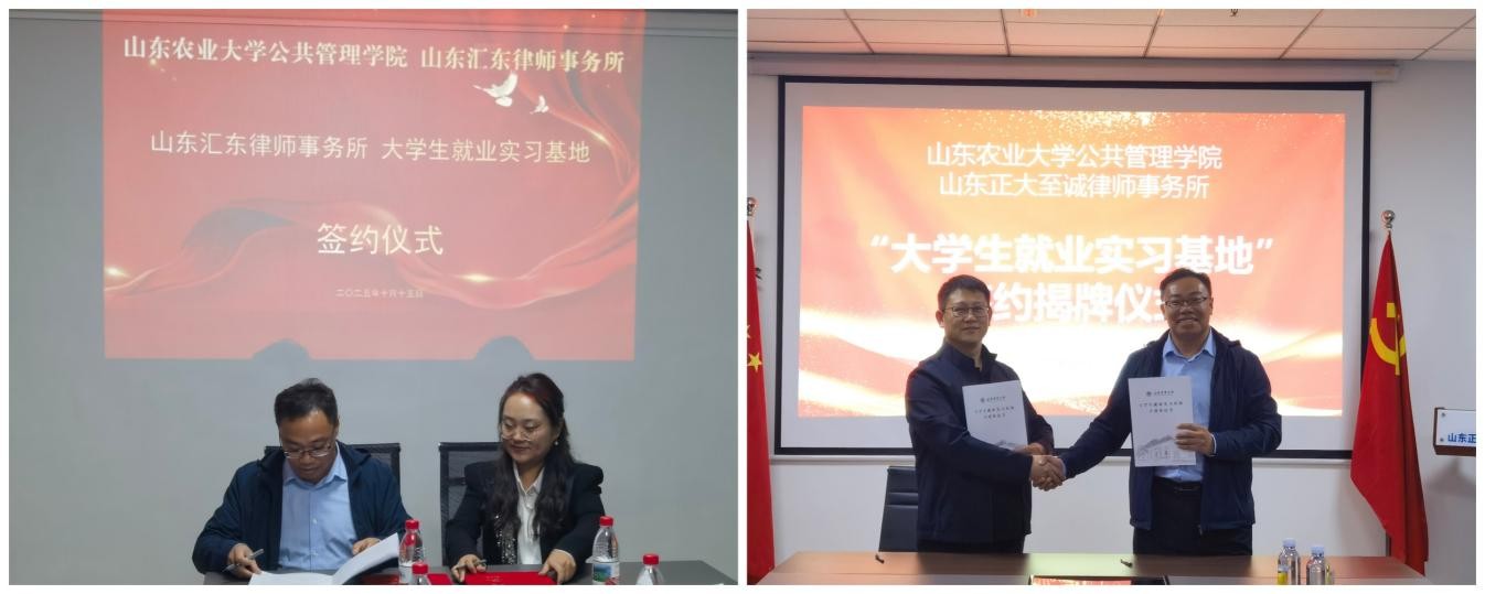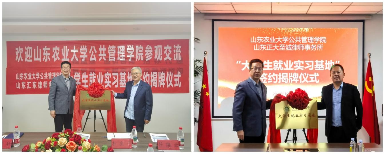 朱震宁分别与山东正大至诚律所主任王峰、汇东律所李绍伟共同为“大学生就业实习基地”揭牌,标志着双方合作正式启动。