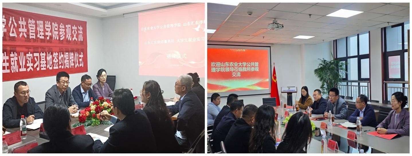 学院一行先后走访山东正大至诚律师事务所与山东汇东律师事务所,亲切看望了在所工作的优秀校友,共话成长发展。随后,学院与两家律所分别举行了“大学生就业实习基地”签约暨揭牌仪式。杜生一代表学院先后与山东正大至诚律师事务所党支部书记王振宏、山东汇东律师事务所主任朱艳梅签署合作协议,就深化校企合作、拓展就业渠道达成共识。