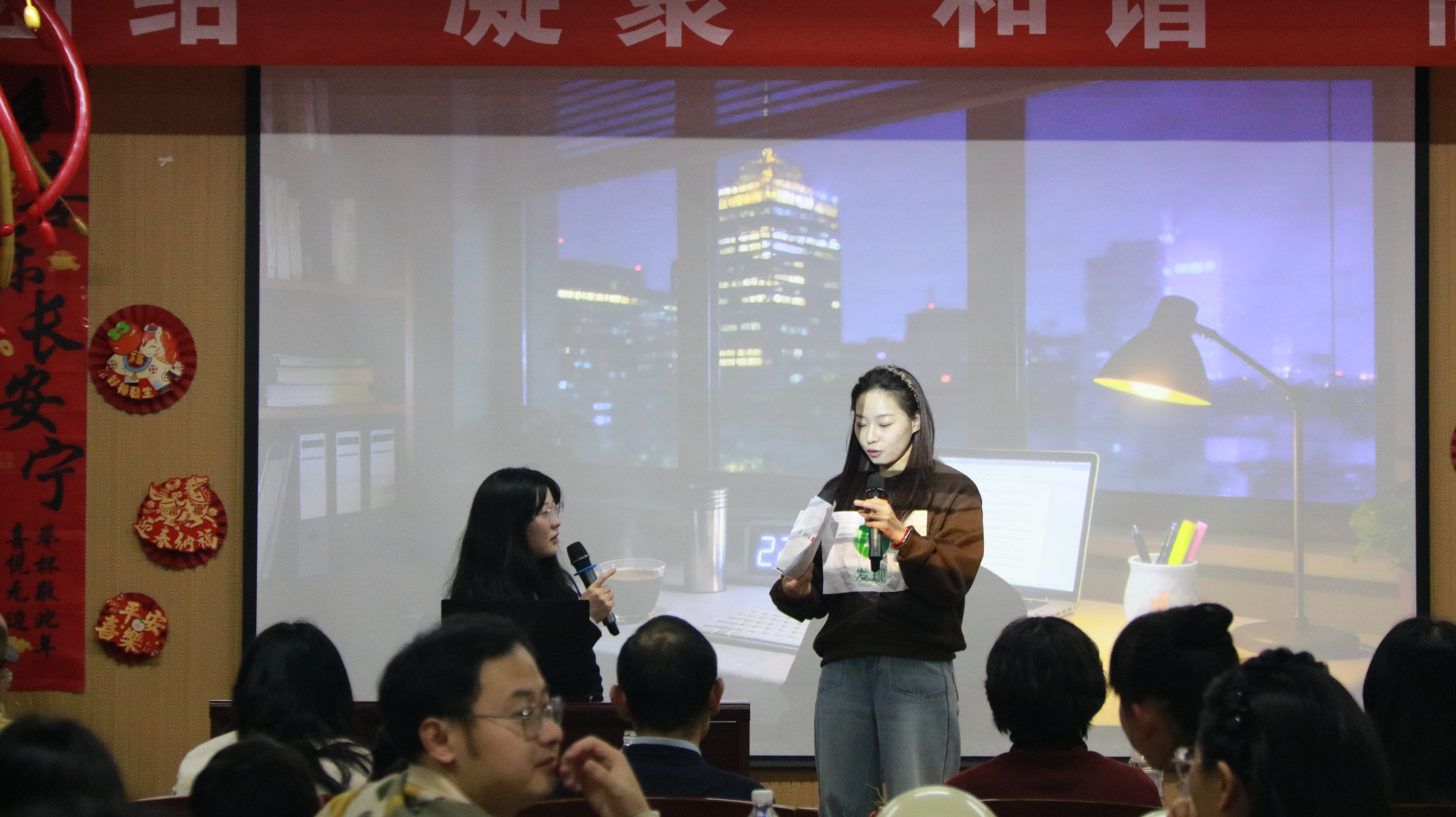 骏马迎春,盛世新篇。在2026年元旦来临之际,公共管理学院研究生“骏马奋蹄启新程,公管研华谱新章”元旦晚会圆满落幕。师生欢聚一堂,在文理大楼802举行公共管理学院研究生元旦晚会,公共管理学院副院长王秀鹃,各学科点负责人和导师参加了晚会,在欢声笑语中共同迎接充满希望的丙午马年。