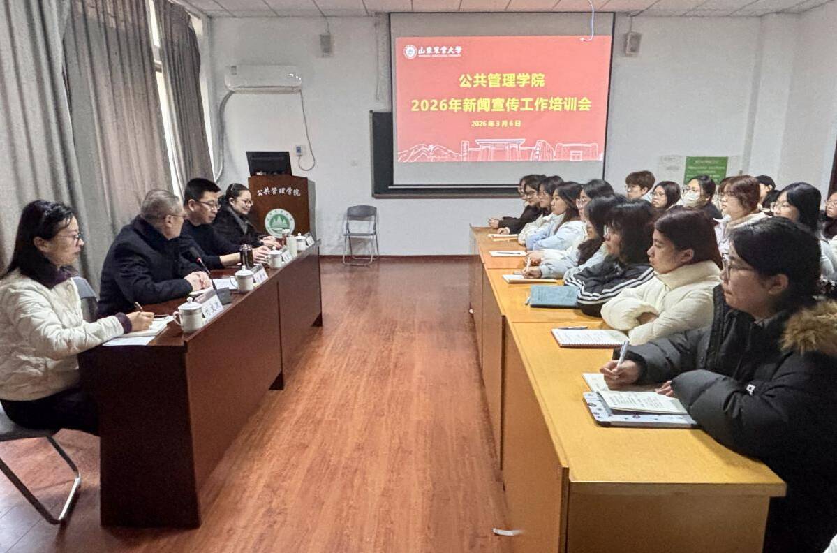 3月6日下午,公共管理学院召开新闻宣传工作培训会。会议紧扣学校决战决胜“双一流”的核心目标,围绕“以守正创新加强宣传思想文化工作,奋进一流的主旋律更加高昂”的总要求,进一步强化学院新闻宣传工作的方向引领与能力建设,切实提升围绕中心、服务大局的宣传效能。学院党委书记孙建迎、副书记朱震宁出席会议,指导老师朱凌、刘文政及学院宣传调研部全体成员参加培训。